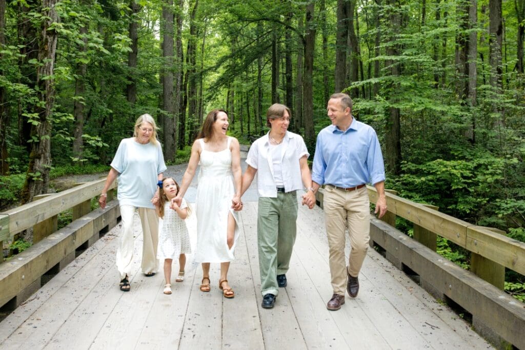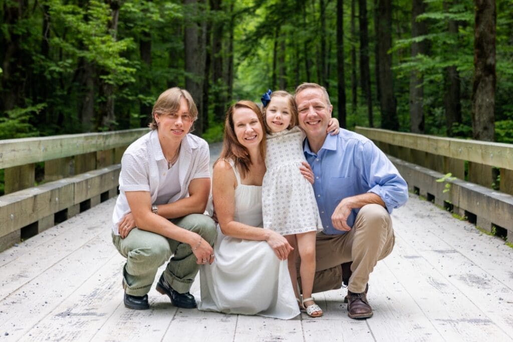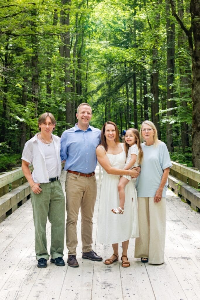 From the moment we started, they were full of smiles, laughter, and love. Their little girl was a total star, and watching the whole family interact so naturally and happily was such a joy. We photographed on a peaceful bridge nestled in the woods, which gave us that dreamy mountain backdrop I love so much.
