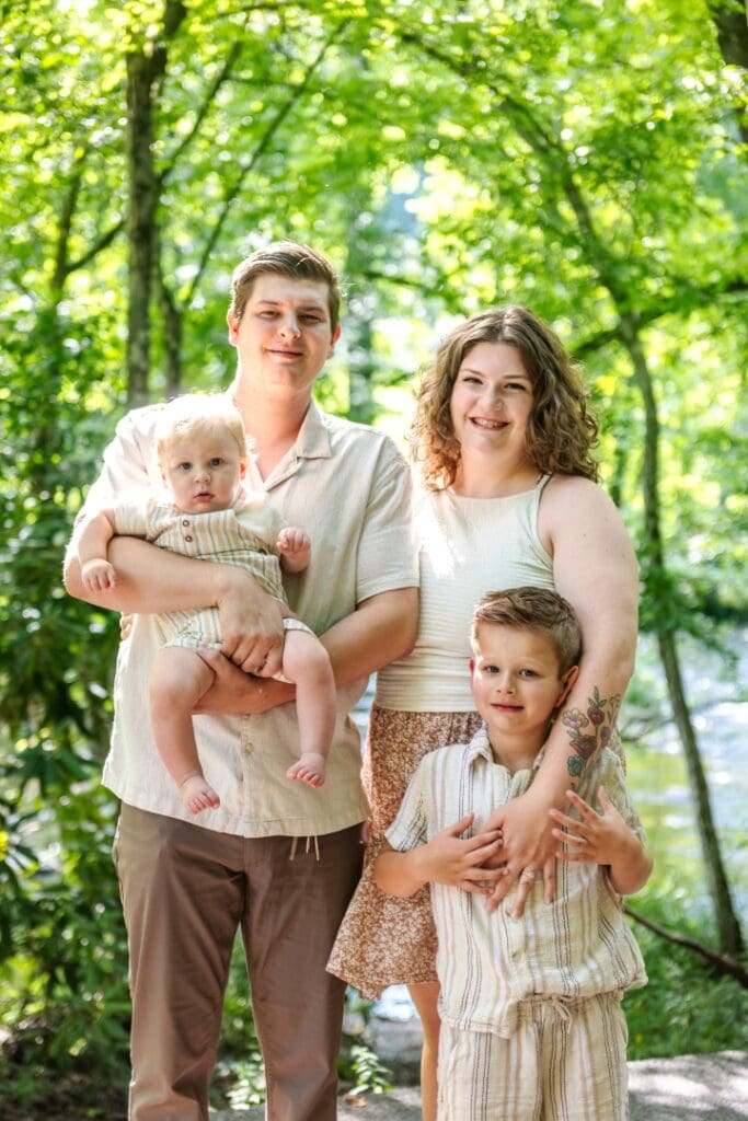 We met near one of my favorite spots, complete with a rustic covered bridge and winding tree-lined roads that made the perfect backdrop. I arrived a little behind schedule thanks to the inevitable July 4th weekend traffic (it happens!), but thankfully we didn’t lose any light. The heat was no joke, and the gnats were definitely out in full force, but everyone powered through with smiles and great attitudes.
