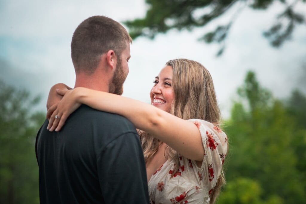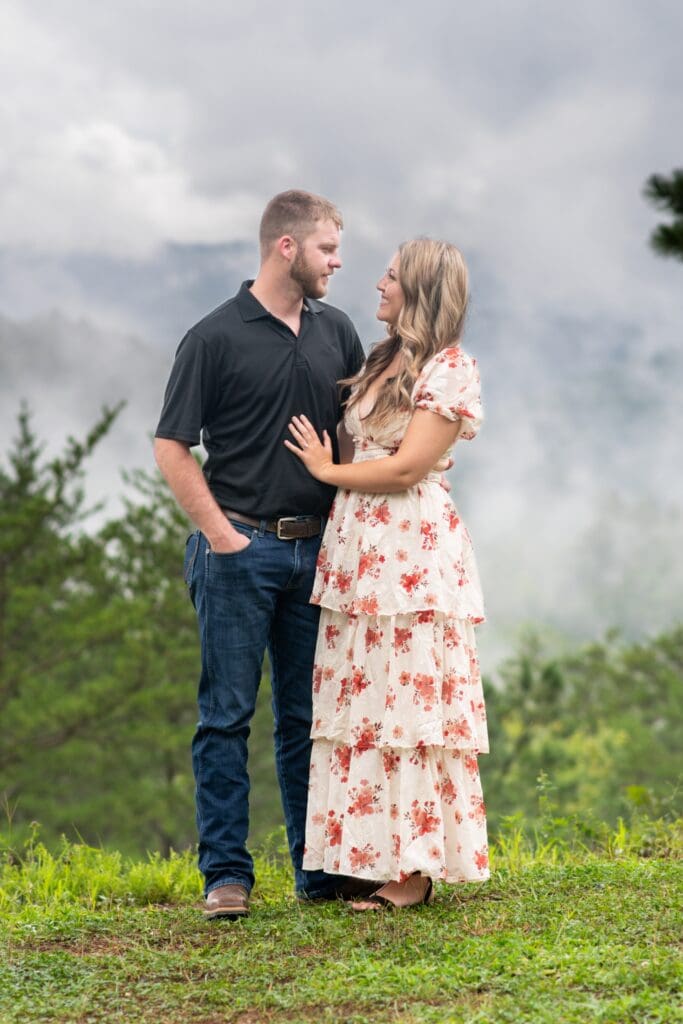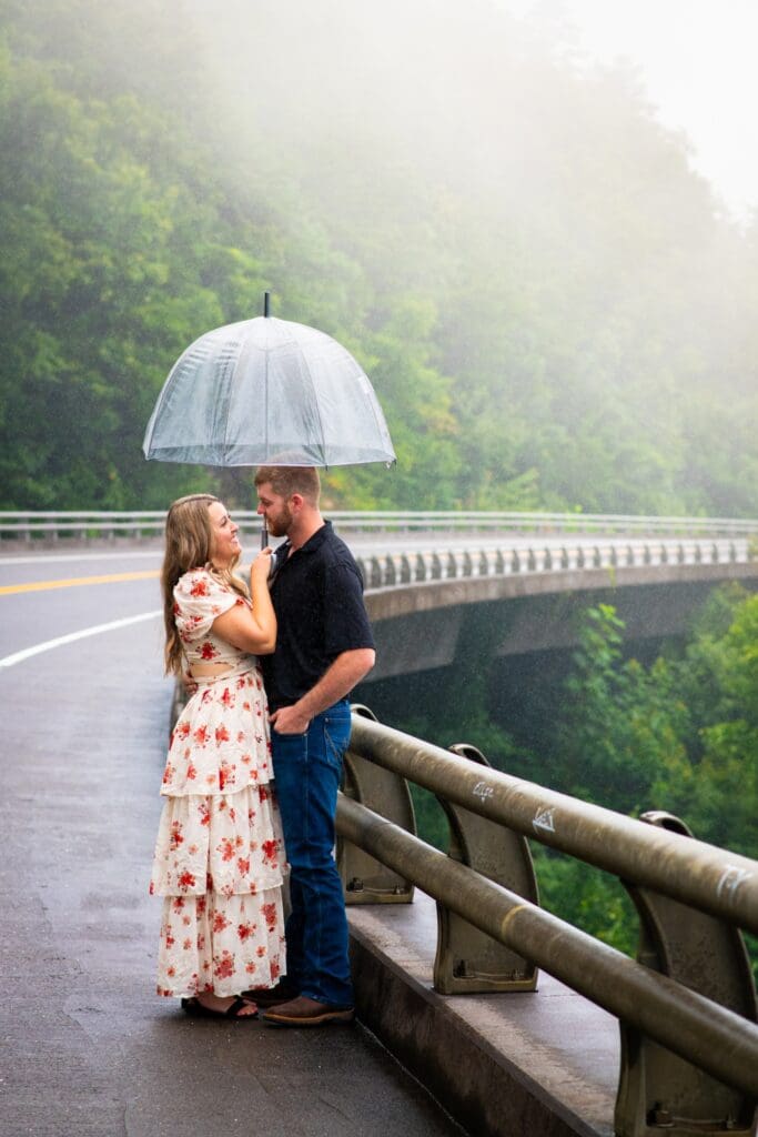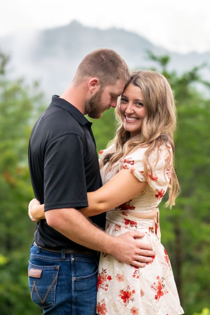 This sweet couple recently got engaged and are planning their wedding for next year. When we planned their session, the forecast looked… well, soggy. Rain had been falling all day yesterday, even causing some flooding in the area. On the morning of our session, a constant light drizzle lingered over the mountains. I asked Rachel if she wanted to reschedule, but she said, “Let’s go for it!” And I am so glad she did.