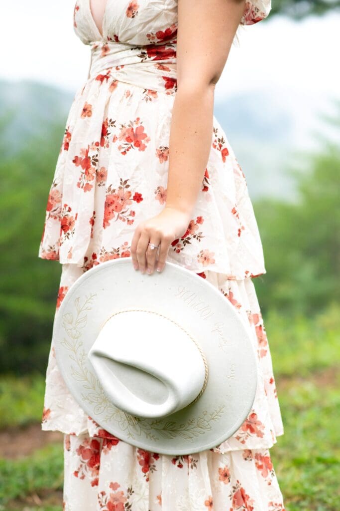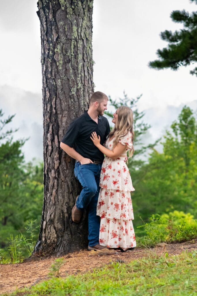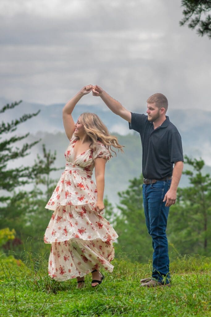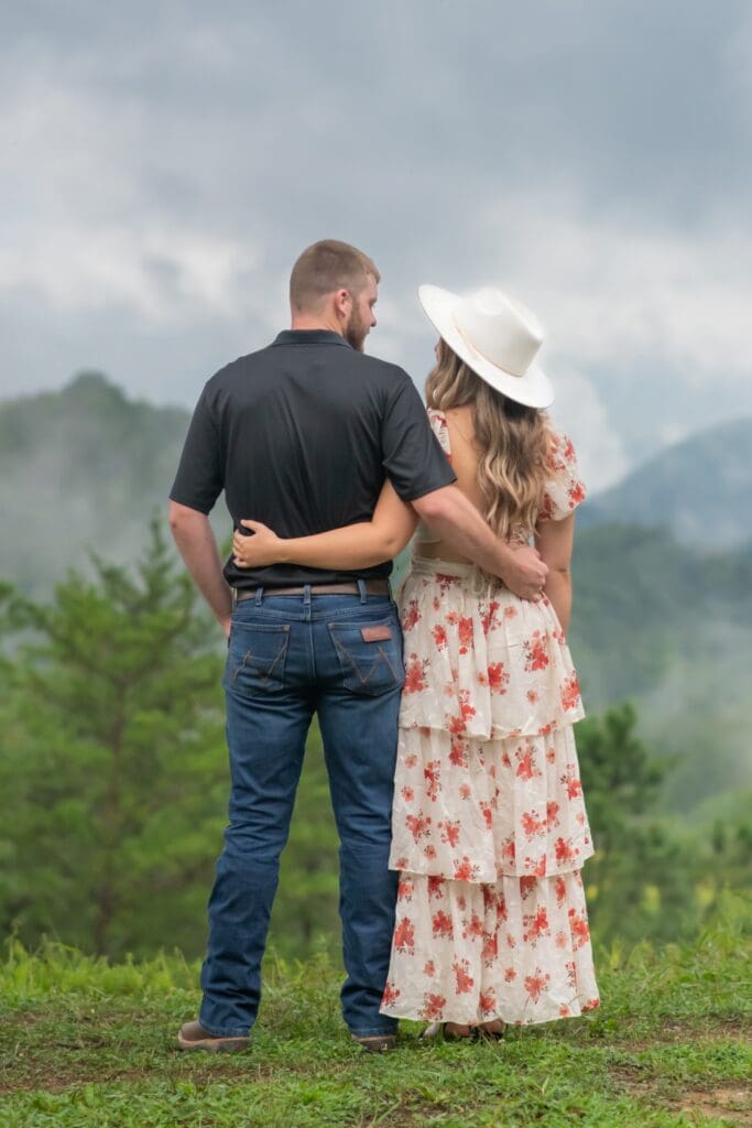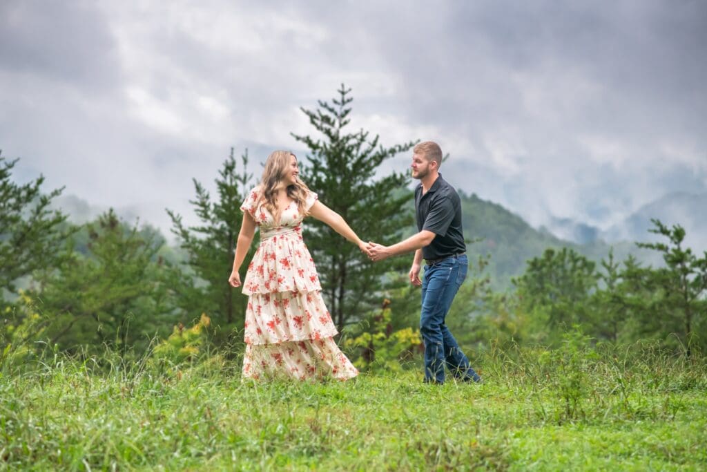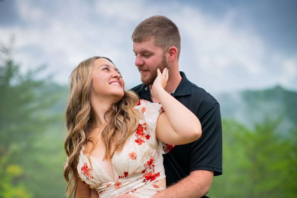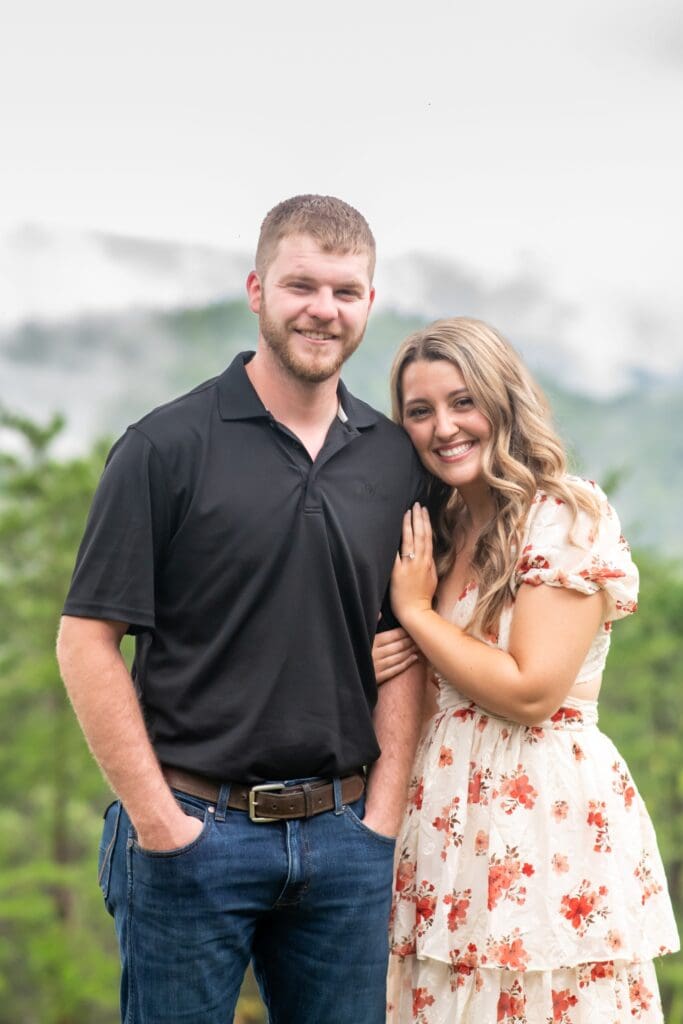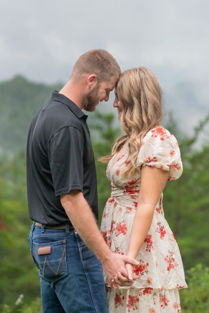 Despite the drizzle, the Smoky Mountains were absolutely dreamy. The misty backdrop created a soft, romantic atmosphere that made every shot feel like it came straight out of a fairytale. Rachel and Devin were up for anything—climbing little trails, laughing through the drizzle, and embracing every moment.