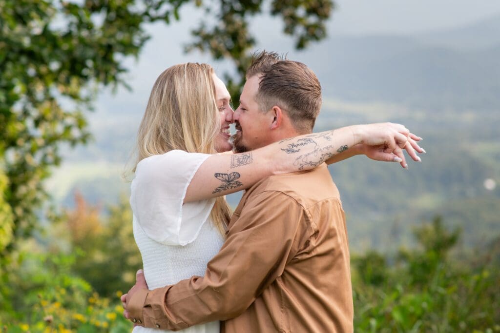 Aimee and Zach’s couple session was the perfect blend of mountain views, easy conversation, and genuine connection. Recently engaged and visiting from Pittsburgh, these two chose to spend their time exploring one of their favorite places—the Smoky Mountains.